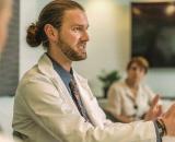 "First-year ophthalmology resident Bradely H. Jacobsen, MD, is focused on the...