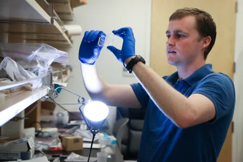 The research project is involved with the continued development of instrumentation which facilitates the world's fastest PCR (affectionately called "extreme PCR”.) PCR is the method by which a single strand of DNA is turned into many strands of DNA (on the order of millions to billions of copies). It is important because all applications where DNA is used (individual identification, paternity tests, disease screenings) require amplified DNA as they are not sensitive enough to work with the single strand of DNA that would come from say, a single cell. Normal benchtop hardware requires about 40 minutes to an hour to complete the process. The group that Jafek works with has demonstrated hardware capable of doing PCR in less than 2 minutes. A large component of the speed is in the chemistry discovered by collaborators in the Wittwer Lab (University of Utah), but Jafek’s group’s instrumentation will be a great step forward in looking for applications of the process.