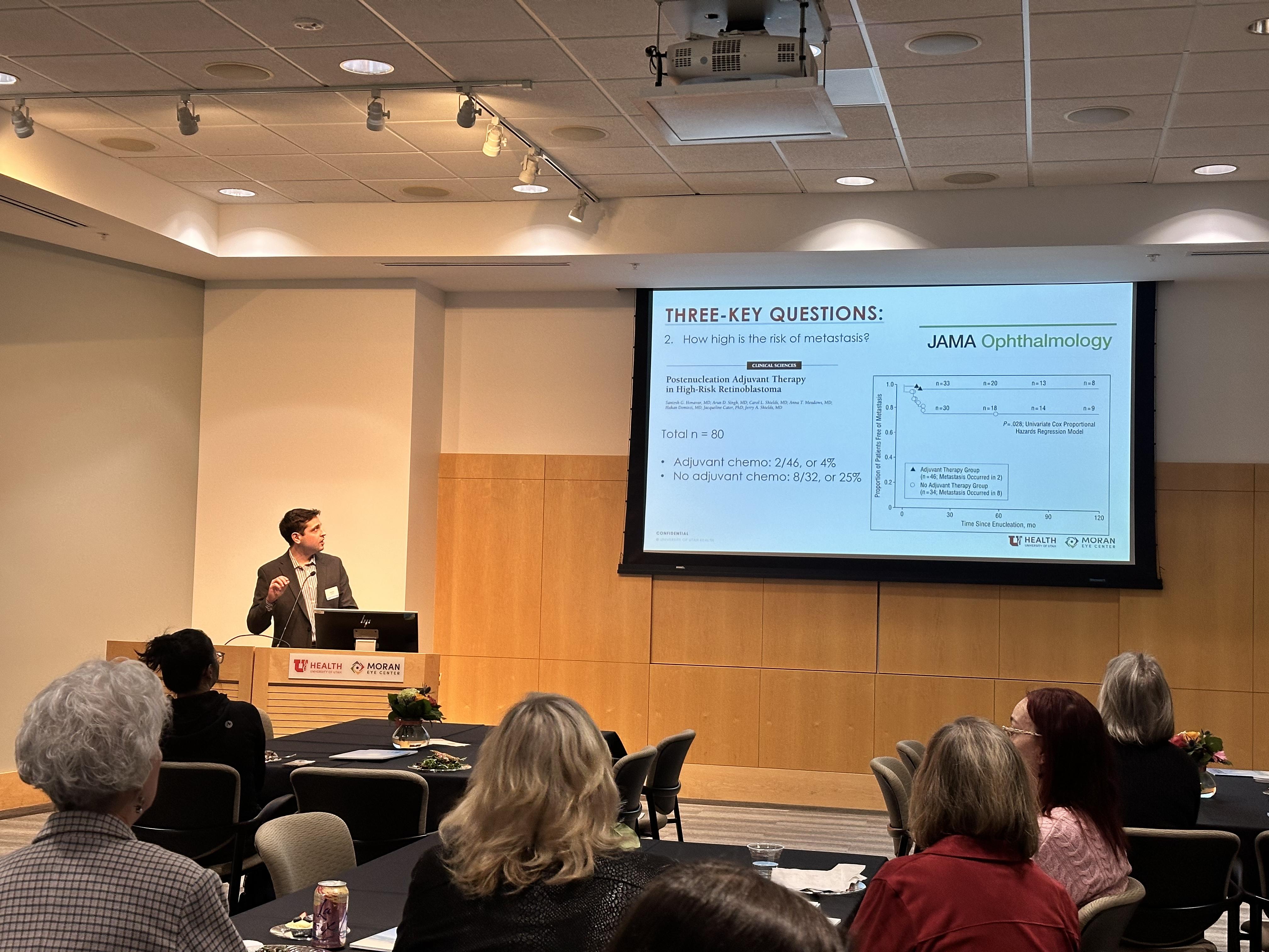 ARCS Scholar Dr. George Sánchez presented at the ARCS Utah Chapter February 24th meeting. Dr. Sanchez discussed his work in treating retinoblastoma,a serious cancer of the eye. George is a third year Ophthalmology Resident at the John A. Moran Eye Center. He earned his medical degree at Dartmouth Medical School with honors including receiving the Arthur Naitove Surgical Scholar Award, given to one graduating medical student with the greatest potential for making a significant contribution to the field of surgery. Over 30 people attended the event at the Moran Eye Center. George announced his match to the Associated Retinal Consultants program in Michigan and his engagement!