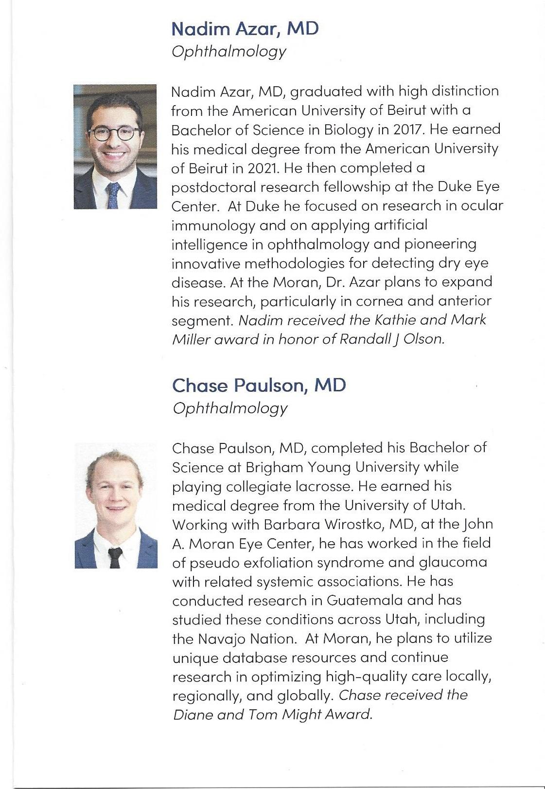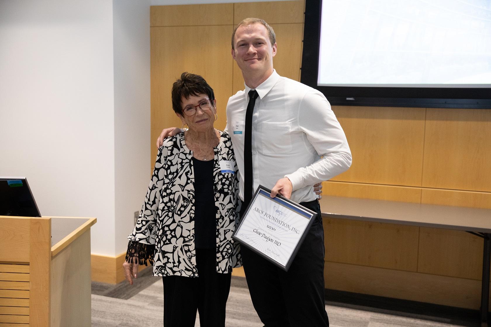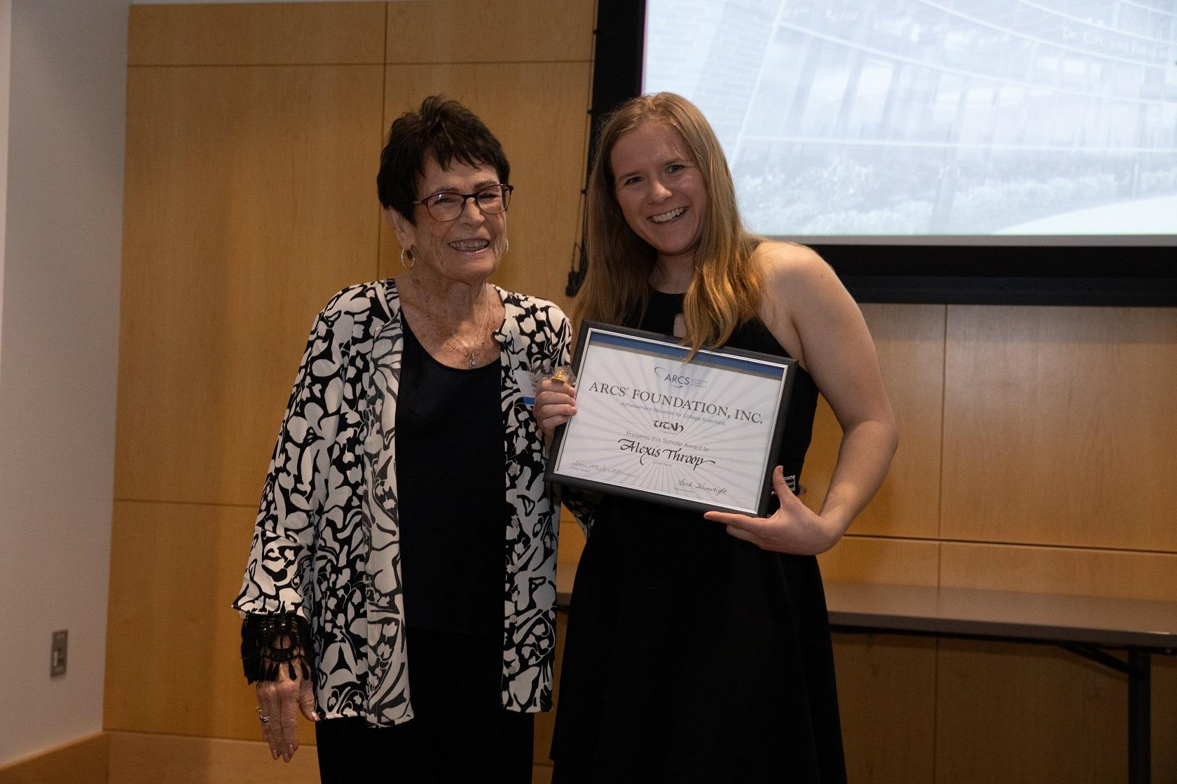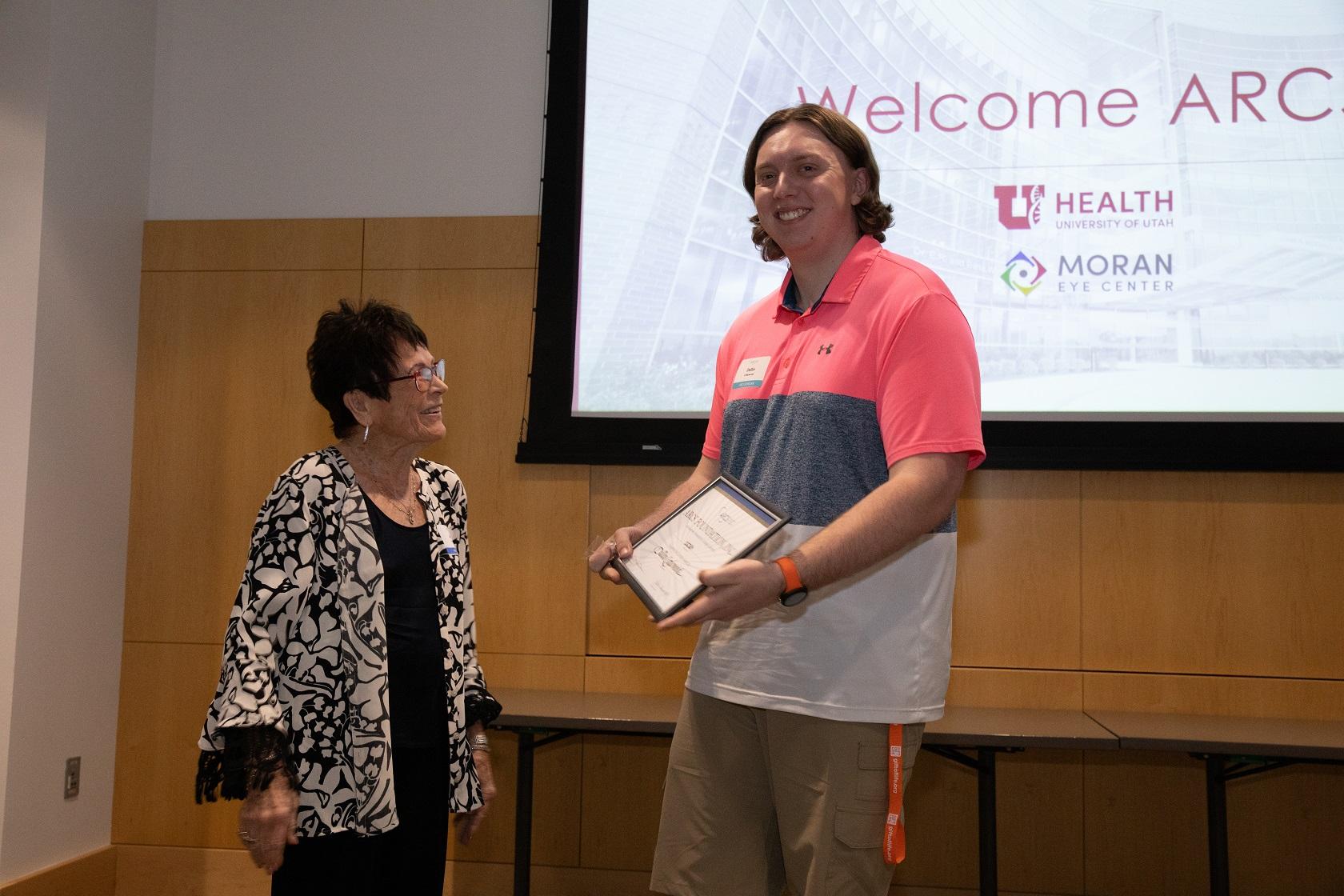 ARCS Members, Scholar Alumns, University Faculty and Staff gathered April 30, 2024 at the Moran Eye Center to recognize the 2023-2024 ARCS Scholars. Certificates and pins were presented to our newest scholars: Alexis Throop, Mechanical Engineering; Dallin Littlewood, Mechanical Engineering; Nadim Azar, MD, Ophthalmolgy; Chase Paulson, MD, Ophthalmology. The group also heard research updates from three of our 2022-2023 Scholars: Dallin Hansen, Electrical Engineering; Liam Sullivan, Mechanical Engineering; and Erica Woertz, MD, PhD, Ophthalmology. This year is also the 15th Anniversary of the founding of the Utah Chapter of ARCS Foundation, Inc. Sadly this anniversary coincides with the retirment of Dr. Rich Brown, Dean of the College of Engineering. Dr. Brown was recognized for his role in founding the chapter and his on-going support of ARCS. More pictures from the event may be seen here.